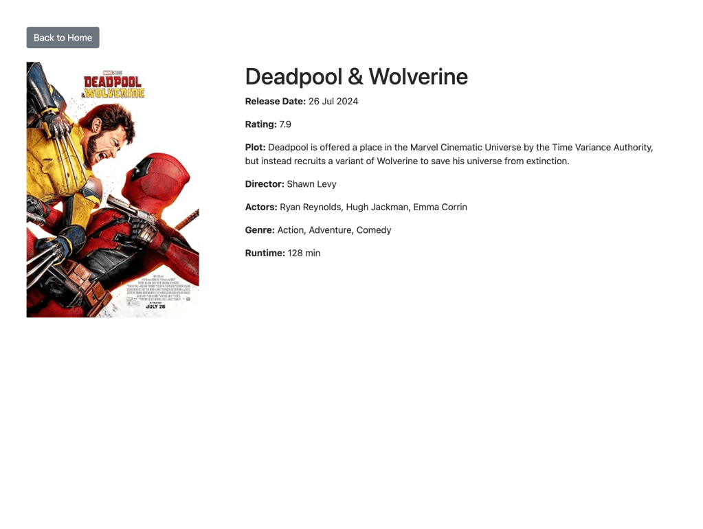 - Each movie has a dedicated detail page that provides users with comprehensive information, including the movie’s plot, release date, rating, director, actors, genre, and runtime.