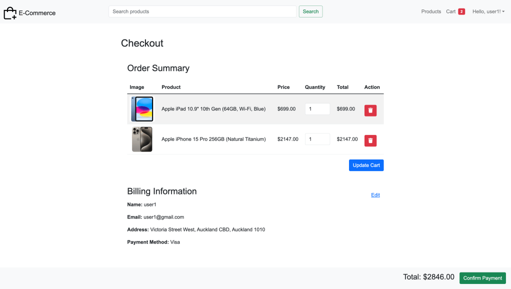 - Customers can add products to the cart and proceed to checkout with integrated payment processing.