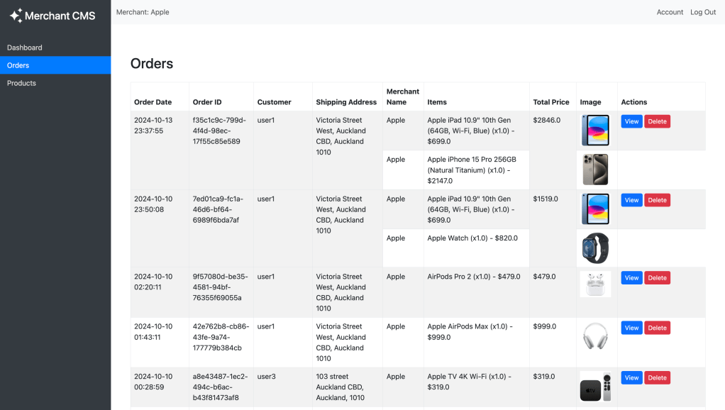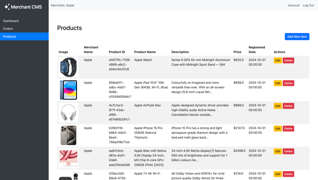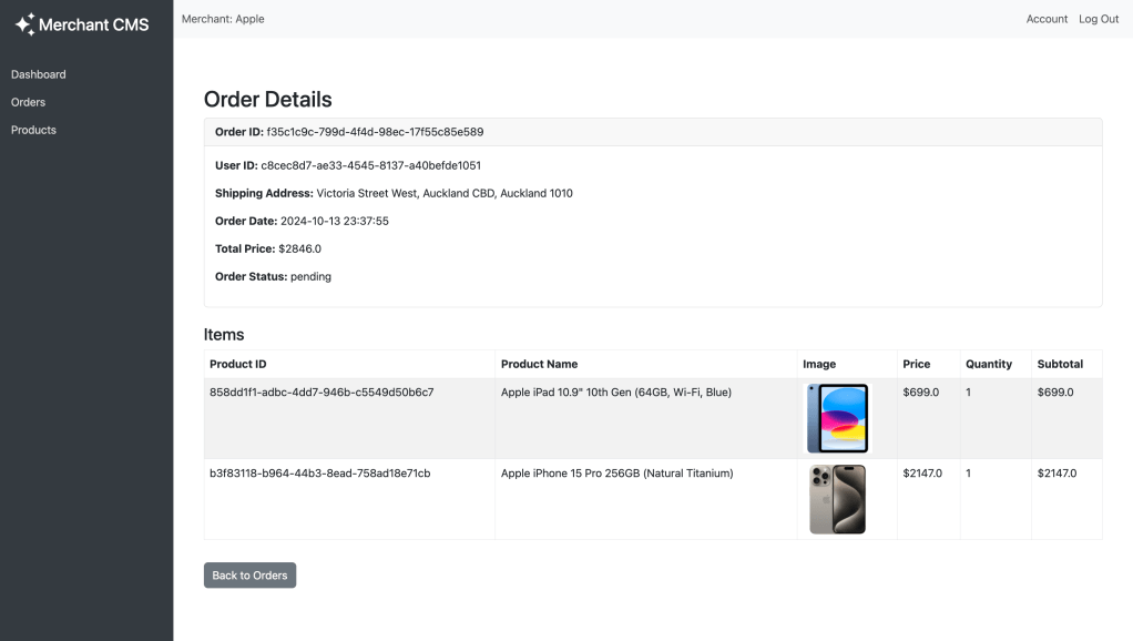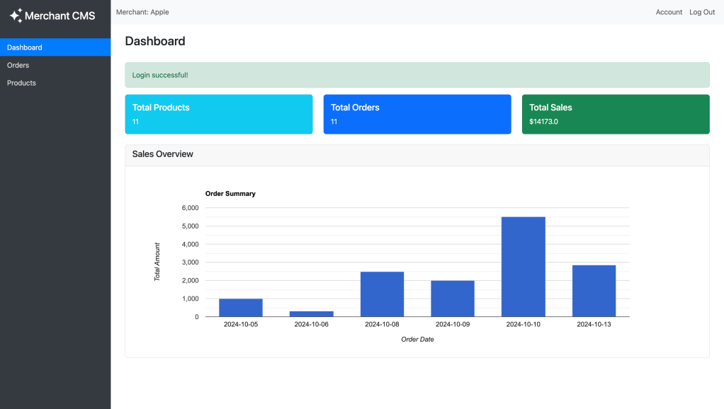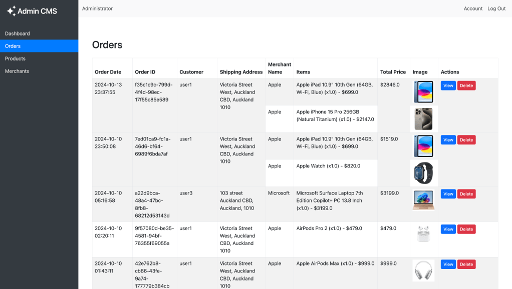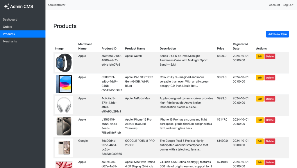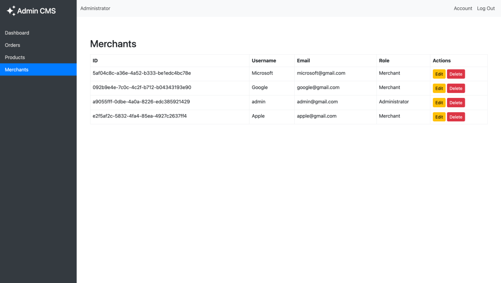 - Administrators can manage orders, products, and user data in real-time while merchants can manage their products.